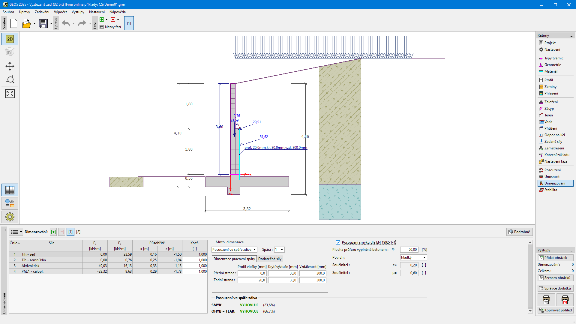 - Posouzení dříku zdi (pouze v případě, že je definován betonový dřík v rámu "Geometrie")