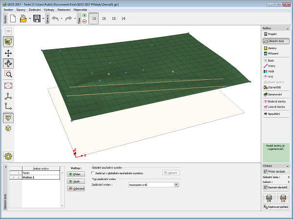 V rozbalitelném seznamu "Typ zadávání vrstev" lze určit způsob zadávání vrstev. Vrstvy lze zadat pomocí mocností vrtů, nebo bodů vrstev.