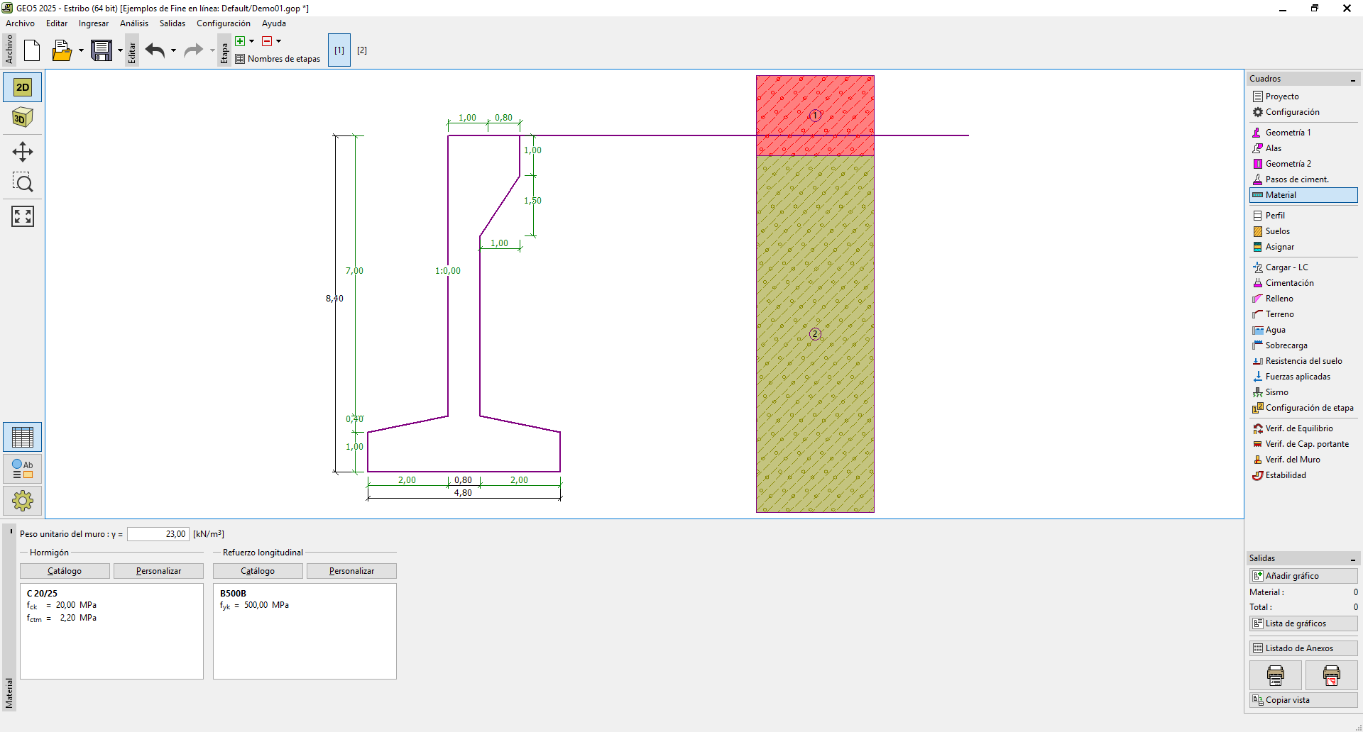 - El botón "Catálogo" abre un cuadro de diálogo "Catálogo de materiales" para seleccionar el material deseado.